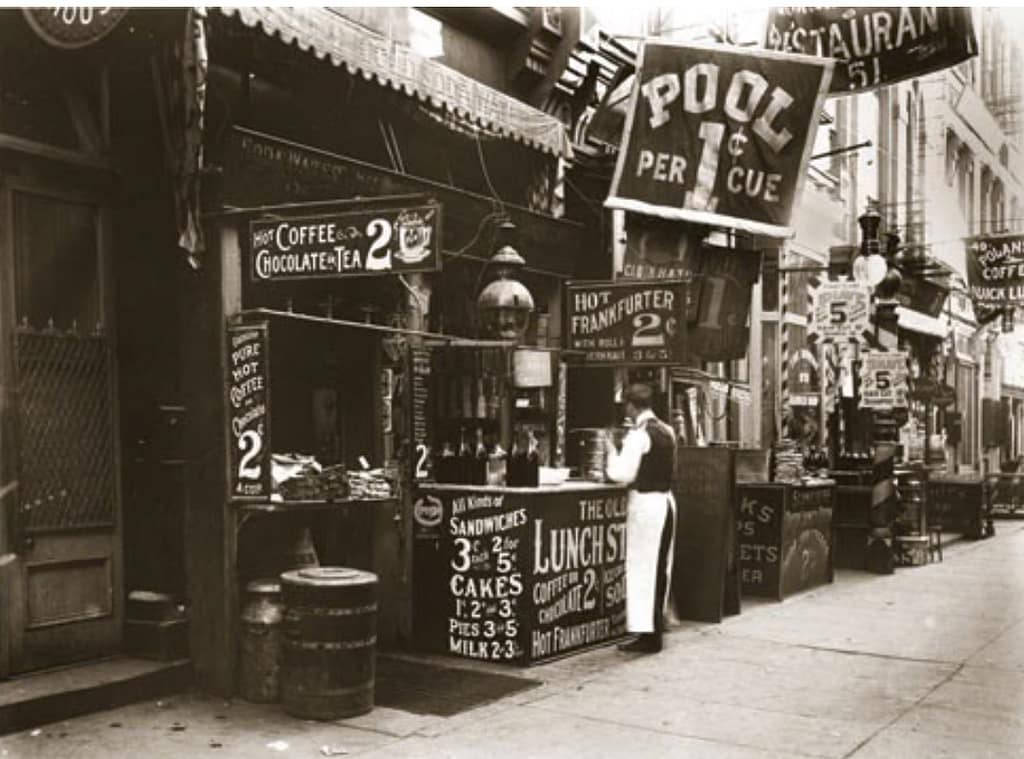 The Bowery was New York City’s earliest theater district, hosting Yiddish theaters and vaudeville. Though most vaudeville had given way to cabaret shows after 1900, in the Bowery, it clung on until after World War One. Yiddish theaters had performances even on Shabbat, drawing cries of desecration from the more religious recent immigrants. But it didn’t stop the masses from going to the shows—the precursor to Broadway—crying, “It’s America, not the shtetl!”
