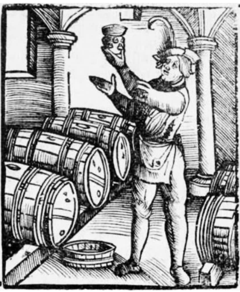 Household records for those higher up the food chain are more readily available and give us some insight about the consumption at that level of society. The Earl of Northumberland’s household accounts noted a potell (four pints) or a gallon (eight pints) of beer served with each portion of food (four people). The lord and lady of the house had one quart (two pints) of beer and another of wine between them at most meals, so two pints of liquid each. It’s not the wildly excessive amounts we often ascribe to the period. In fact, drunk behavior was frowned upon. There was, however, a more relaxed attitude toward drinking alcohol. But drunkenness still occurred, as advice existed about what to do to avoid it, such as drinking milk beforehand (a tip I got in college also!) or a large draught of salad oil, which sounds like it would create more problems than it solved.